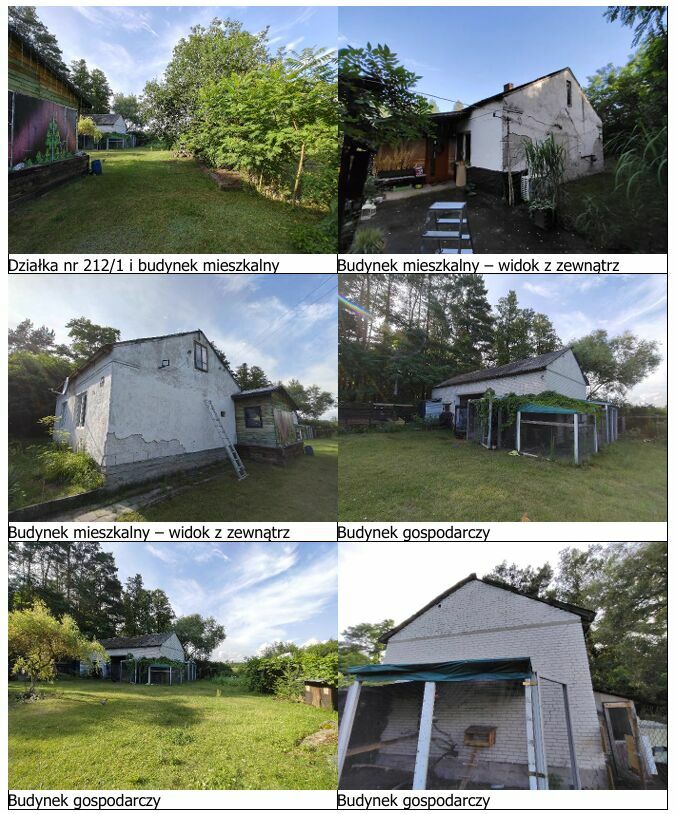 Działka nr 212/1 zabudowana jest budynkiem mieszkalnym jednorodzinnym w zabudowie wolnostojącej, niepodpiwniczonym, parterowym o powierzchni zabudowy 75 m2 oraz budynkiem gospodarczym, niepodpiwniczonym, parterowym o powierzchni zabudowy 79 m2.