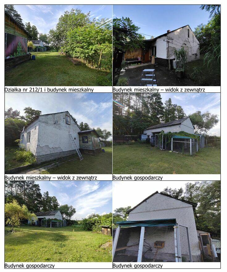 Działka nr 212/1 zabudowana jest budynkiem mieszkalnym jednorodzinnym w zabudowie wolnostojącej, niepodpiwniczonym, parterowym o powierzchni zabudowy 75 m2 oraz budynkiem gospodarczym, niepodpiwniczonym, parterowym o powierzchni zabudowy 79 m2.